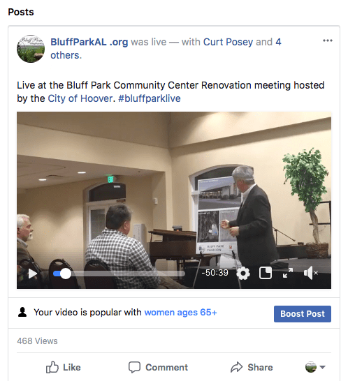 Around 50 people attended the meeting held at Shades Crest Baptist Church while others watched via BluffParkAl’s Facebook Live Stream.