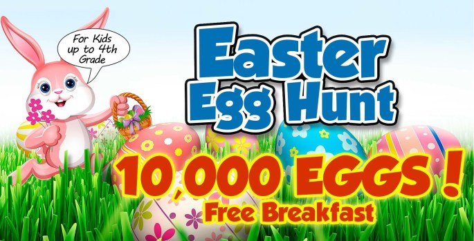- Breakfast and registration for the egg hunt begins at 9:00am and closes promptly at 9:45am.