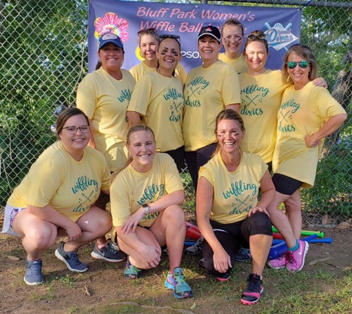 Think you are too old to hit the field with the Bluff Park Women’s Wiffle Ball League? The players cover a broad range in age from early twenties to late fifties, some athletic and some eager for physical activity, some familiar with the game and some eager to learn.